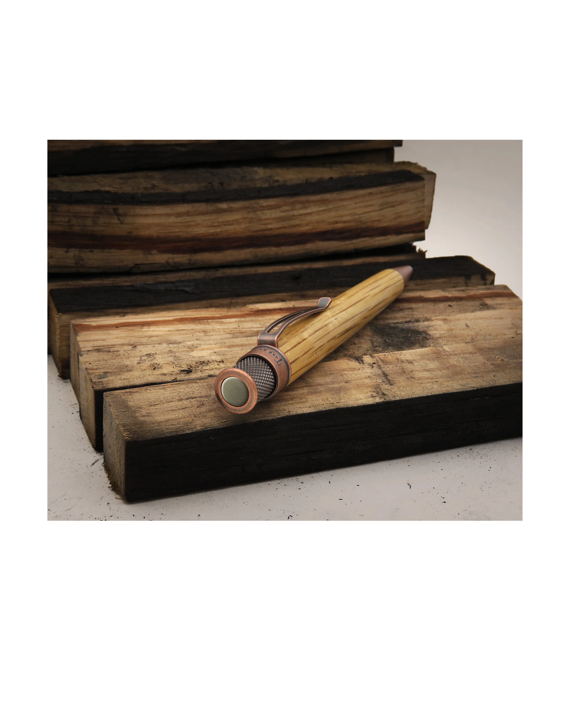 - reclaimed oak sourced from US distilleries and skillfully turned down into the pen barrels