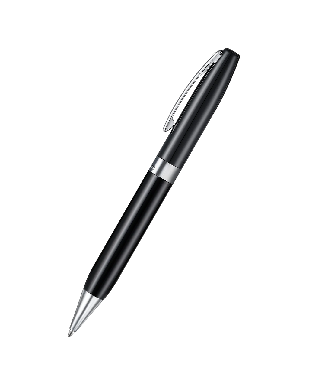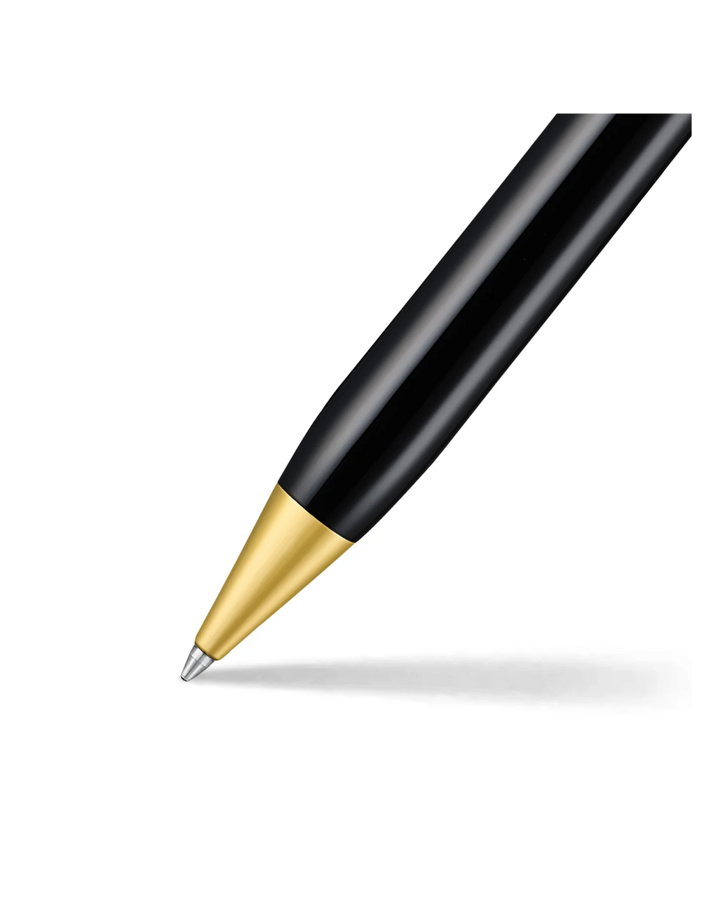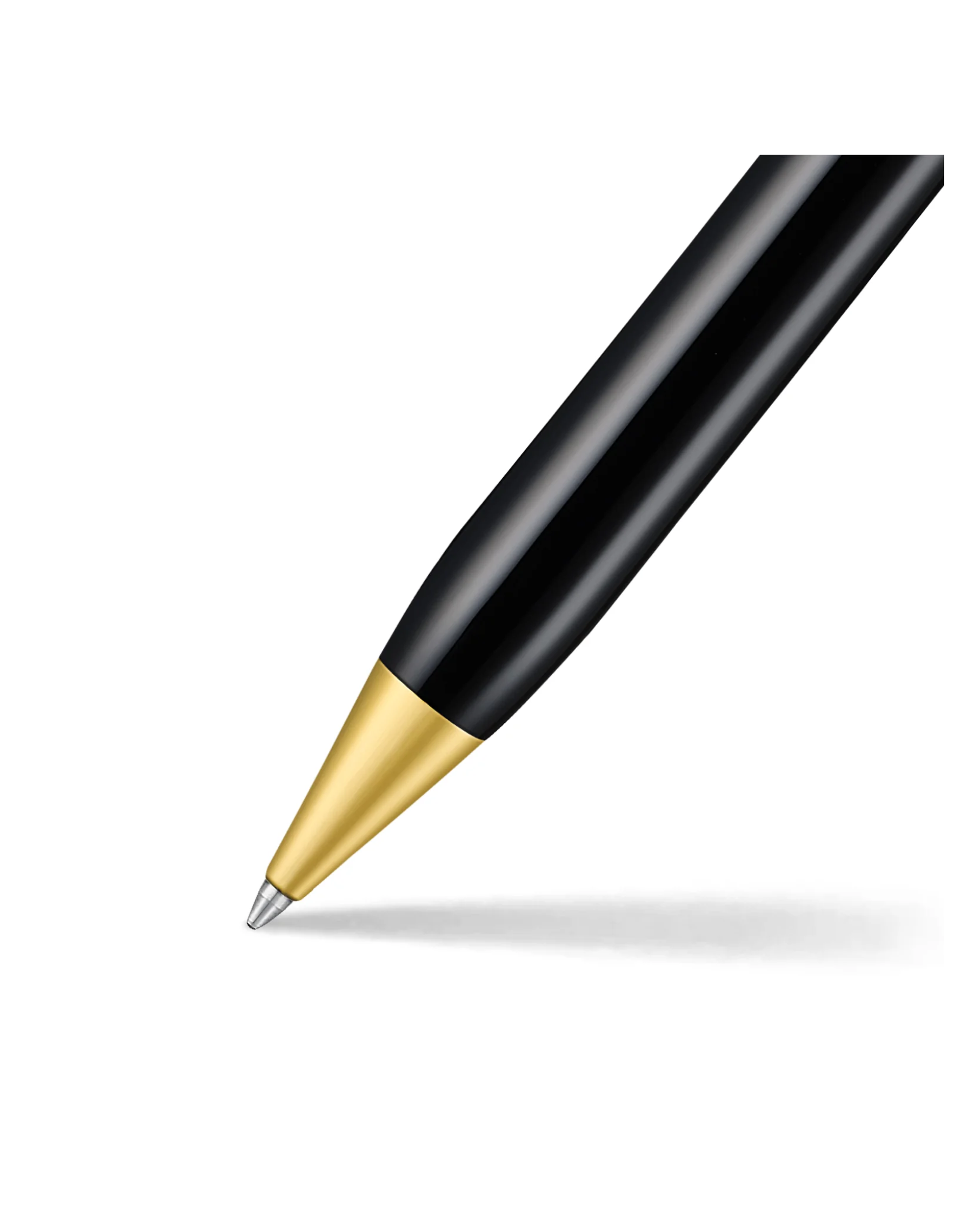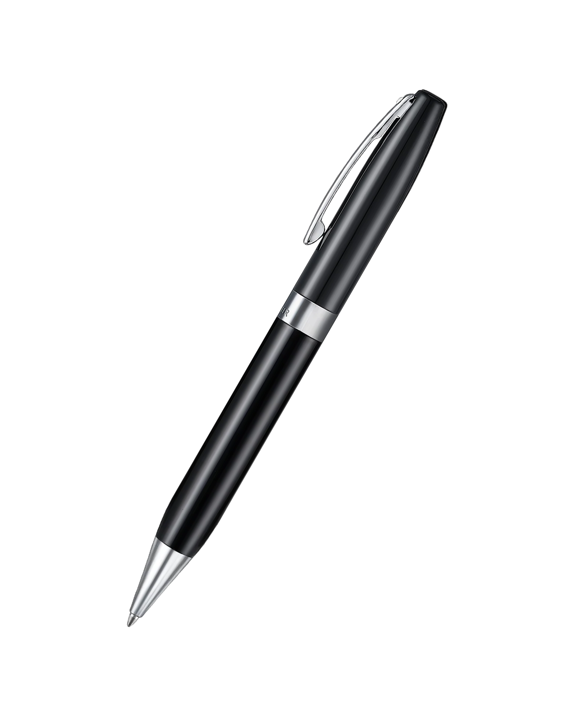 glossy black ballpoint pen with 14K PVD gold-plated or chrome-plated trims